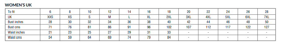 Bust (ins) 28 30 32 34 36 38 40 42 44 46 48 50