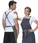 Contrast grey neck tie and thick webbing cross back ties. Large front pocket. Width 71cm. Length 91cm. Domestic wash 60°C.