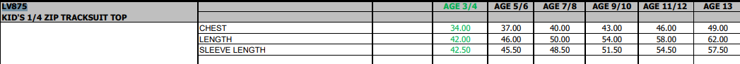Sizing Details