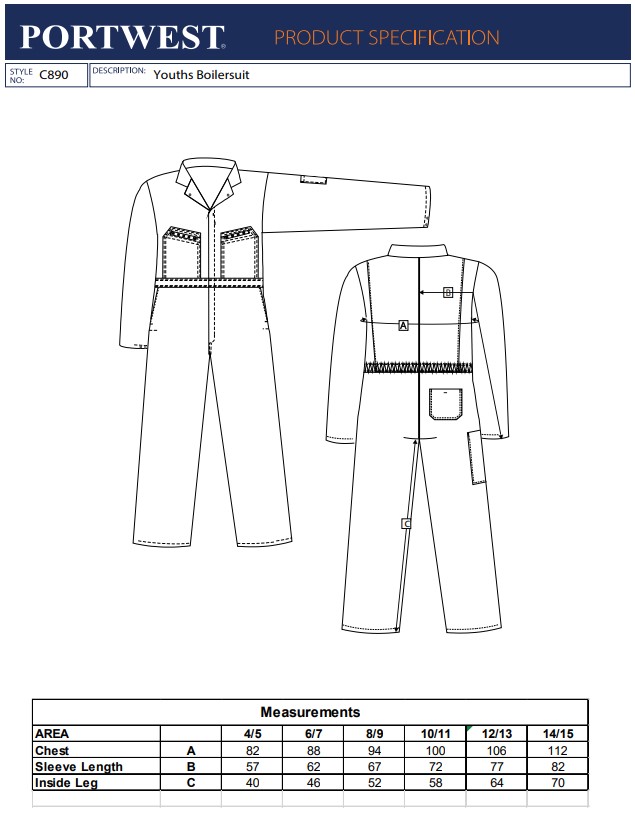 Portwest C890 Youth's Coverall C890