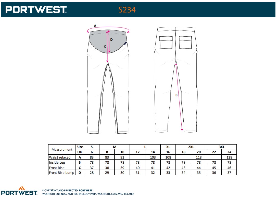 Portwest S234 Stretch Maternity Trousers S234