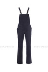 Bib with extensive renal protection, elastic braces and buckle with snap closure, side opening with buttons and flap closure with zip, elastic waistband. Double seams on the crotch and inside leg. Chest pocket with badge holder and zip closure, two front pockets and pen holder pocket, right side tape measure pocket and a back pocket with flap and Velcro closure.